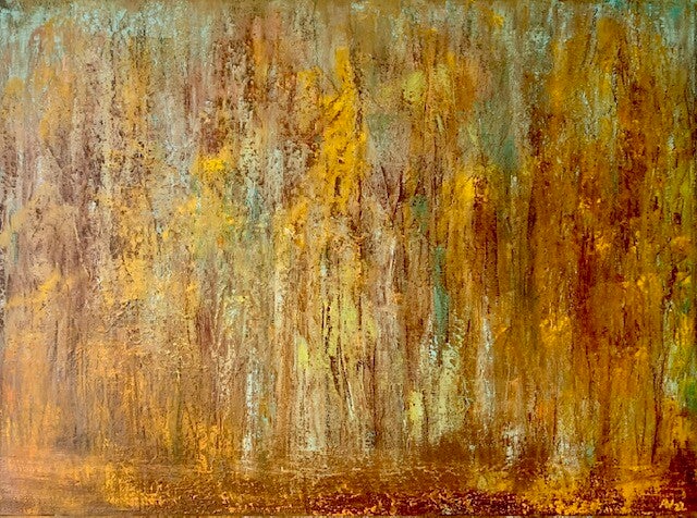 Dat betekent dat ik eerst vormen en kleuren op het doek zet, min of meer zoals ik het meestal doe, maar die probeer ik niet doelgericht verder uit te werken. Waarom zou ik ze verduidelijken, verbeteren, uitwerken of detailleren?