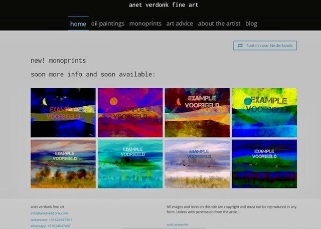 anetverdonk.com is Engelstalig. In de menubalk staat de titel: anetverdonk fine art. De Nederlandse site is er uiteraard ook nog: anetverdonk.nl. (Daar ben je nu ;-))