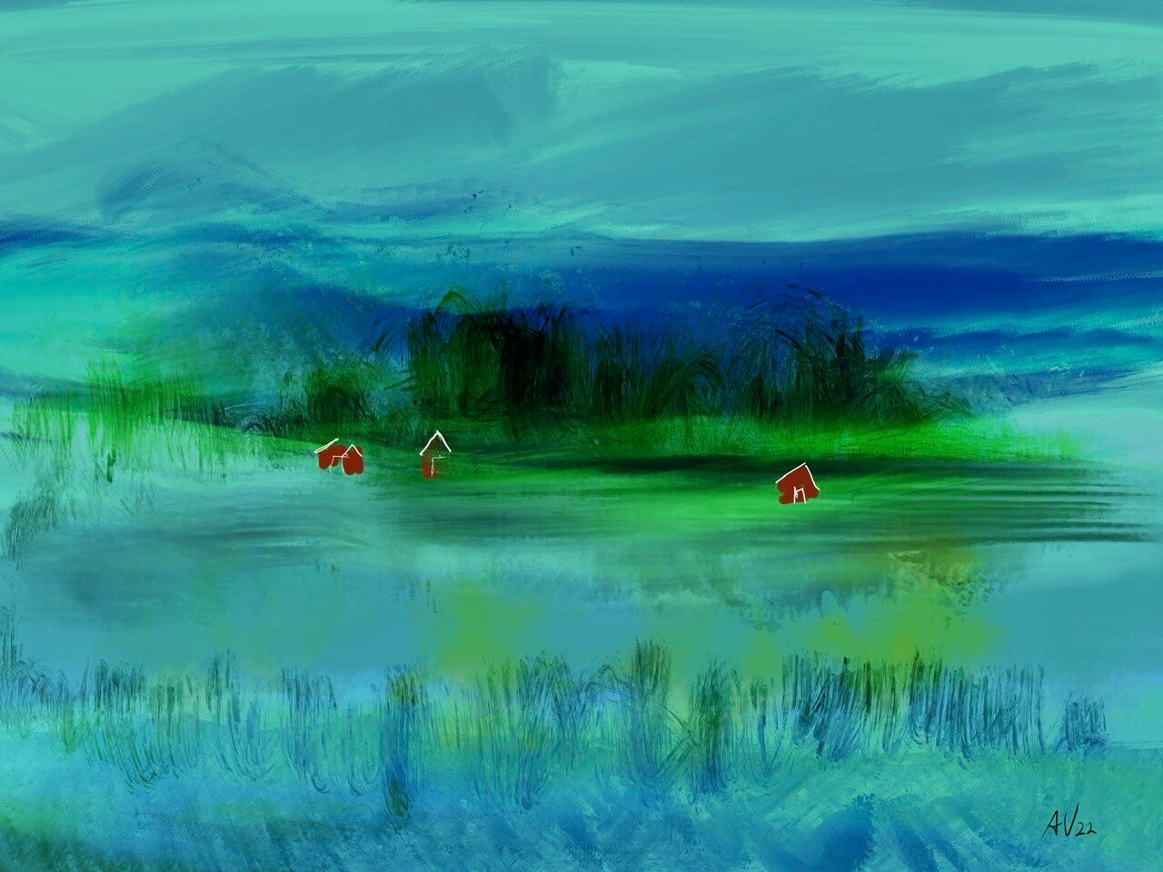 Voorbeelden van digitale schilderijen, geïnspireerd op het landschap